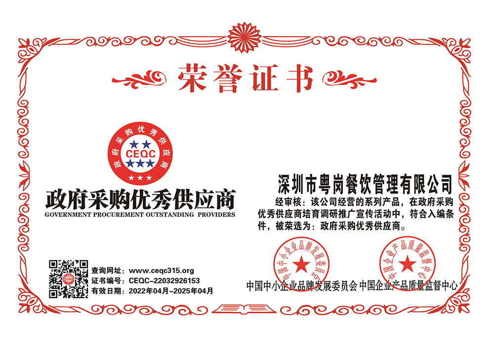 深圳市粵崗餐飲管理有限公司,是一家集蔬菜種植和農(nóng)副產(chǎn)品配送為一體的專業(yè)型餐飲公司,主要為學(xué)校、工廠企事業(yè)機(jī)關(guān)單位提供蔬菜和農(nóng)副產(chǎn)品配送服務(wù)。公司自成立以來(lái)始終以質(zhì)優(yōu)價(jià)廉、服務(wù)至上為原則,嚴(yán)格按照ISO:9001國(guó)際標(biāo)準(zhǔn)體系進(jìn)行管理。同時(shí)建立了行業(yè)領(lǐng)先的配送中心、大型冷庫(kù)和保鮮庫(kù)、檢測(cè)中心以及專業(yè)化的配送團(tuán)隊(duì),能長(zhǎng)期安全、穩(wěn)定、準(zhǔn)時(shí)的配送貨物。我們所有蔬菜均經(jīng)過(guò)初步加工、無(wú)黃葉,無(wú)泥沙等雜質(zhì),利用率達(dá)97%以上...保障向用戶提供的各類食材的衛(wèi)生和質(zhì)量。公司為了適應(yīng)不同客戶的需求,配有專業(yè)人員和配送車輛,實(shí)行“一對(duì)一”的服務(wù)體制,一心一意的為客戶服務(wù),秉承粵崗誠(chéng)實(shí)守信、服務(wù)第一、客戶至上的服務(wù)標(biāo)準(zhǔn),真正讓客戶花最少的錢吃最好的菜?;泹彾嗄陙?lái)何以欣欣向榮,因?yàn)槲覀冎乐挥杏掠趽?dān)當(dāng)責(zé)任,才能承擔(dān)更大的責(zé)任,就是因?yàn)?粵崗員工貫徹公司態(tài)度決定一切、細(xì)節(jié)決定成敗的真理,從質(zhì)量抓起,從服務(wù)做起,才創(chuàng)造了如今的規(guī)?;?yīng)、統(tǒng)一性配送、專業(yè)化服務(wù)的粵崗。